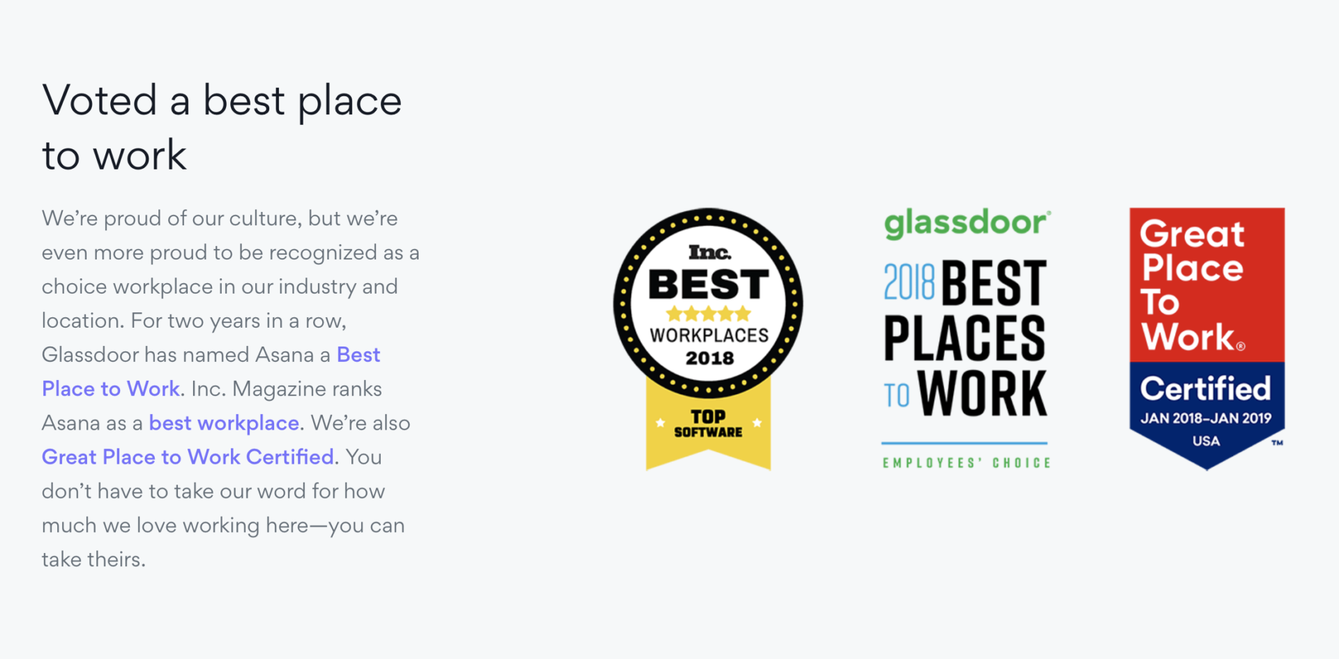 Если ваша компания имеет какие-то награды или номинации как работодатель, не стесняйтесь сделать это заметным элементом вашего карьерного сайта. Так, например, сделал emperor [и судя по количеству различных бонусов, свои награды они получили не зря], KW, asana и TransferWise.