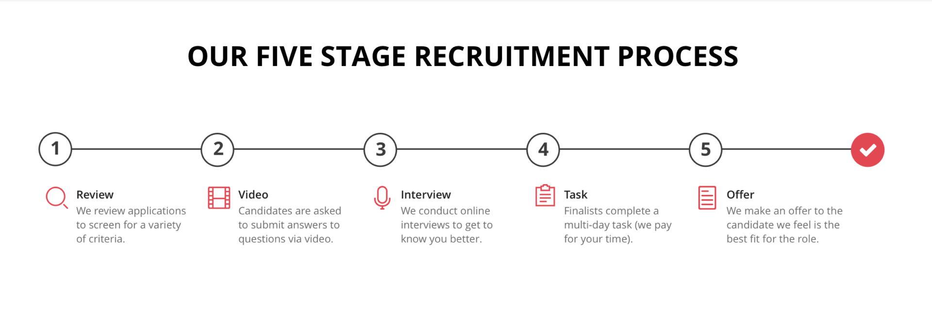 Хороший тон — рассказывать кандидатам, что их ждет: как проходит процесс отбора, к каким вопросам надо быть готовым, сколько времени надо ждать ответа. HotJar, например, добавили целый блок на свой сайт об этом , а NetFlix записали на эту тему подкаст и оставили его на видном месте на карьерной странице.